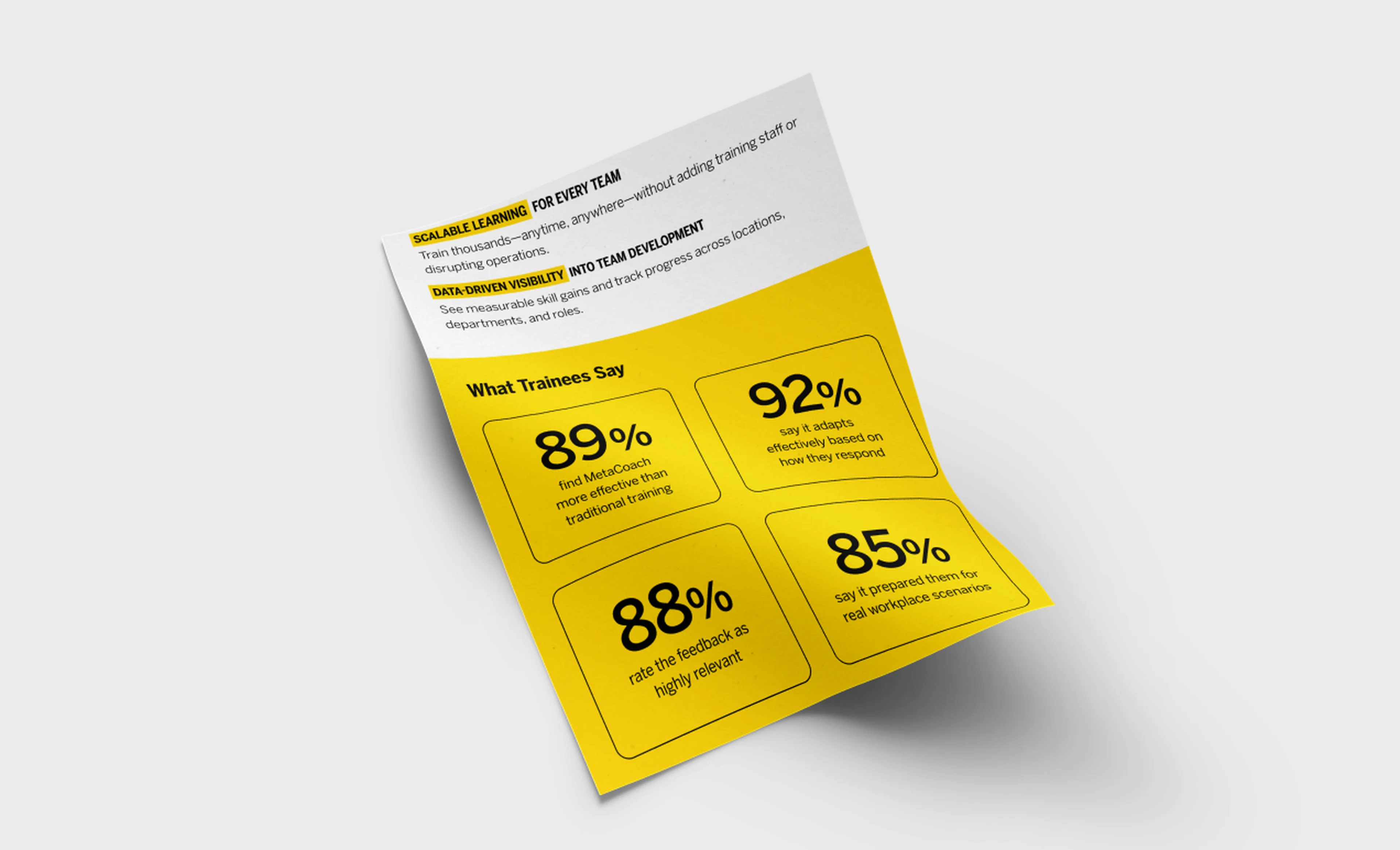 Elevate workforce competencies with MetaCoach's real-time analytics that instantly identify performance patterns and deliver strategic insights. Our intelligent system transforms learning data into actionable recommendations, maximizing team potential while providing complete visibility into your organization's development journey.